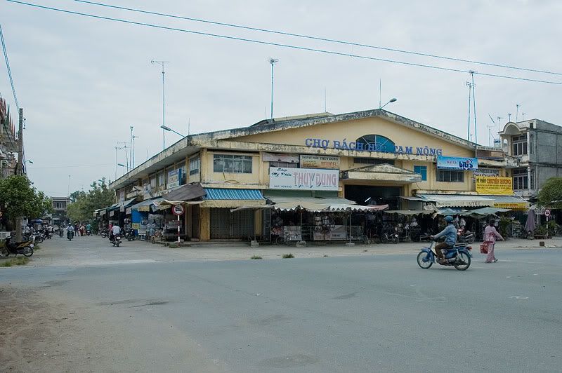 6h sáng thức dậy chuẩn bị đồ đạc, trả phòng, vòng ra chợ Tam Nông ăn sáng đến 8h mới khởi hành. Dự định hôm nay sẽ là một chuyến đi nhẹ nhàng (khoảng 70 km) từ Tam Nông theo QL843 - Kinh Trung ương - Hồng Ngự - Tân Châu - Châu Đốc. Chợ Tam Nông buổi sớm trước lúc khởi hành