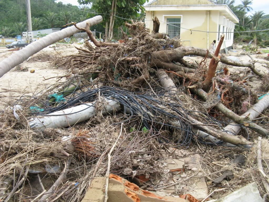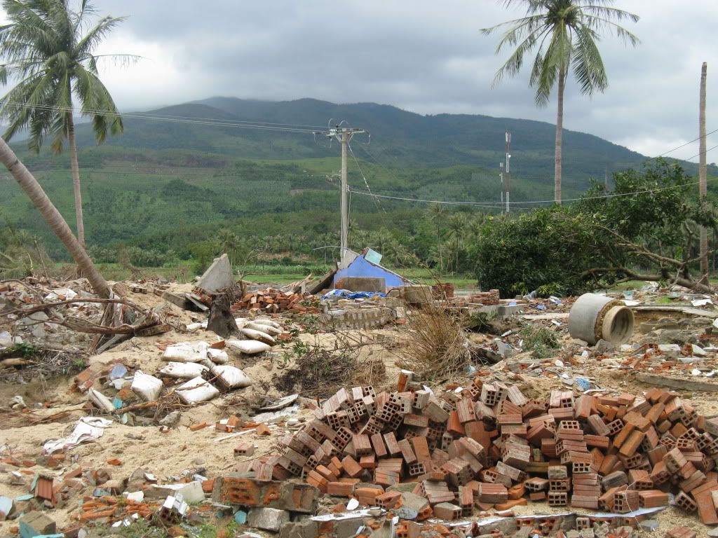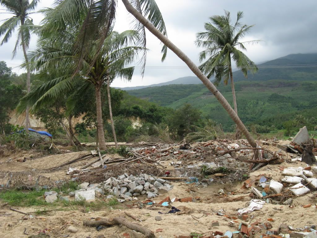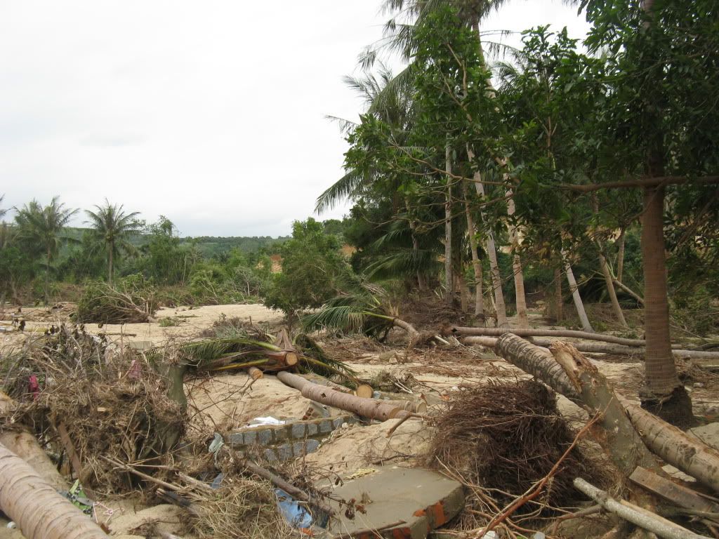 quang cảnh nơi thực hiện cứu trợ sau 3 tuần khi dòng lũ đi qua
