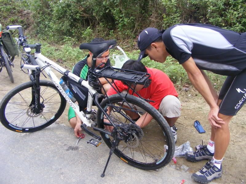 Tiếp tục lên đường được 10 phút thì...xe ôi là xe..1 chiếc bị gãy đề..thế là tàn rồi...còn leo đèo nỗi gì